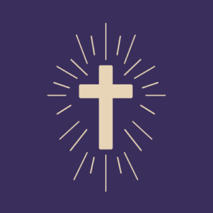 Be Mighty Mom Ministry logo with purple background and cross symbol.
